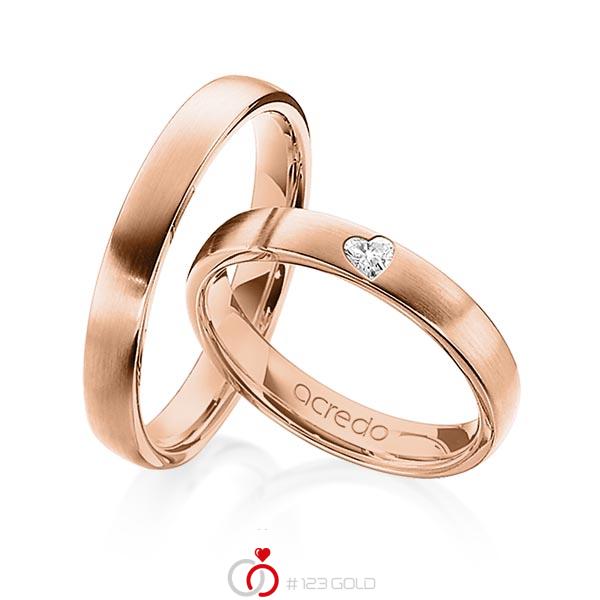 Paar Klassische Trauringe Eheringe In Rotgold 585 Mit Zus 0 08 Ct Herz Diamant Tw Vs Von Acredo