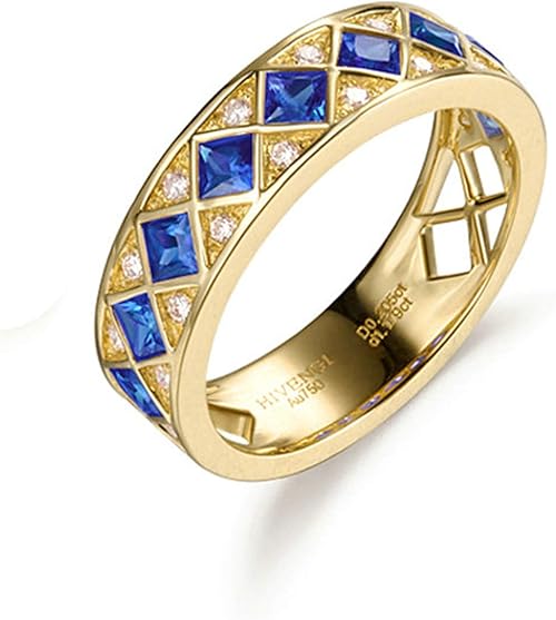 Knsam 750 Gold 18k Gelb Gold Ring Verlobung Ring Gold Eheringe Fur Damen Quadratischer Gitter Ring Damen Ring Mit 1 296ct Saphir Gold Amazon De Schmuck