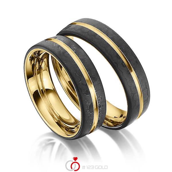 Paar Carbon Trauringe Eheringe In Gelbgold 750 Carbon Einzug Von 123gold