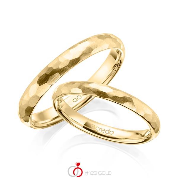 Paar Klassische Trauringe Eheringe In Gelbgold 750 Gehammert Struktur Von Acredo