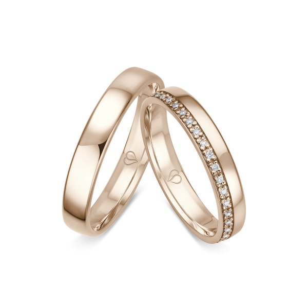 Damit sind Eheringe aus Gold 750 aber nicht nur schwerer, sondern fühlen sich in der Hand auch angenehmer und wertiger an Darüber hinaus sind sie bei entsprechender Verarbeitung durchaus robuster, langlebiger und härter als Trauringe aus Gold 585 Diese Vorteile spiegeln sich entsprechend im Rohpreis wider, wovon man sich generell jedoch. Bei THE JEWELLER findest Du eine große Auswahl verschiedenster Eheringe 750er Gelbgold – von klassisch bis modern, glänzend oder mattiert findet sich so für jedes Paar der passende Ring Entscheide selbst, ob Eure Trauringe 750er Gold mit funkelnden Diamanten besetzt sein oder durch elegante Schlichtheit glänzen sollen?. Paar Trauringe/Eheringe von 123gold in Roségold 750/ Oberfläche poliert, längsmatt mit zus 0,02 ct Brillant tw, vs (Produkt 1 mit Steinbesatz, Produkt 2 ohne Steinbesatz) #123gold #trauringe #eheringe #partnerringe #freundschaftsringe #hochzeit #gold #rosegold #18k #750 #poliert #struktur #laengsmatt #verschnitt #brillant #diamant.