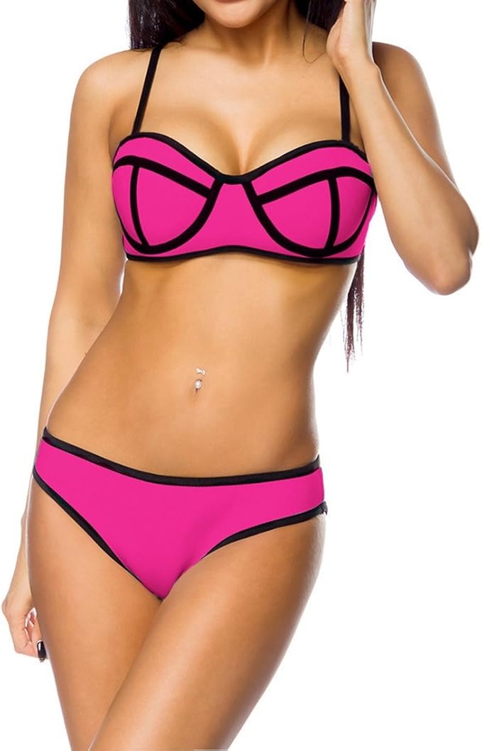 Damen Neopren Bikini Schwarz Pink Gemustert Mit Trager Oberteil Und Hoschen Amazon De Bekleidung