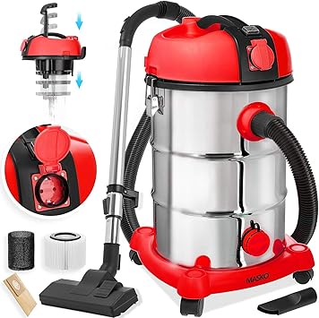 Masko Industriestaubsauger Staubsauger Nass Trocken Sauger Edelstahl 2300w Steckdose Blasfunktion Trocken Saugen Nass Saugen Push Clean Industrie Sauger Mit Ohne Beutel Beutellos Rot Amazon De Baumarkt