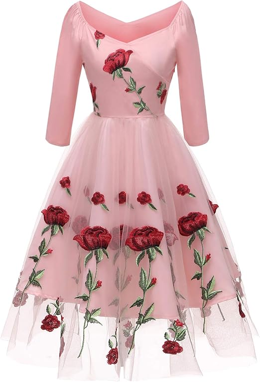 Aofur Damen 1950er A Line Vintage Retro Kleid Cocktailkleid Rockabilly Petticoat V Ausschnitt Faltenrock Abendkleid Knielang Gross Grosse 36 50 Amazon De Bekleidung