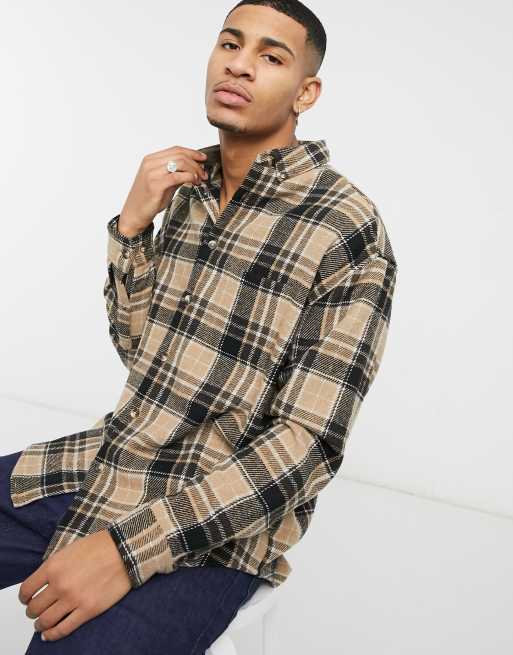 Asos Design Karierte Hemdjacke In Kamelbraun Aus Wollgewebe Asos