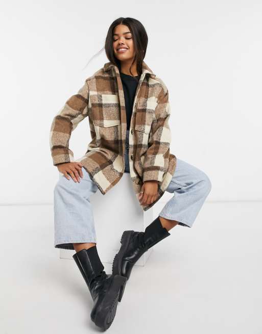 Karierte Hemdjacke Mit Wollanteil Topshop