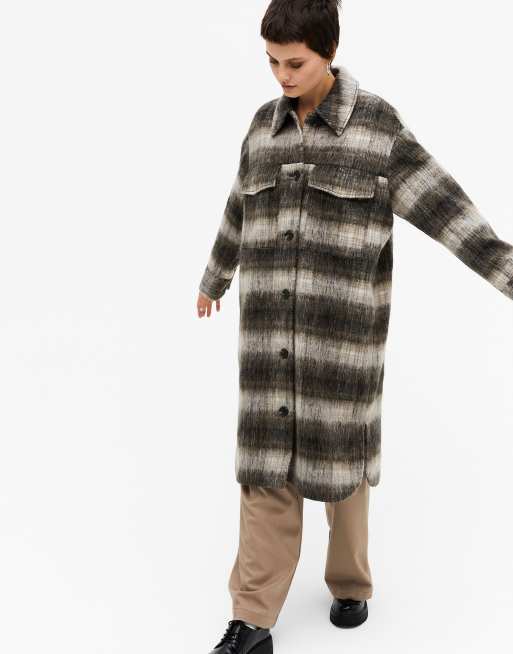 Monki Daze Lange Karierte Hemdjacke Aus Recyceltem Material In Braun Evesham Nj
