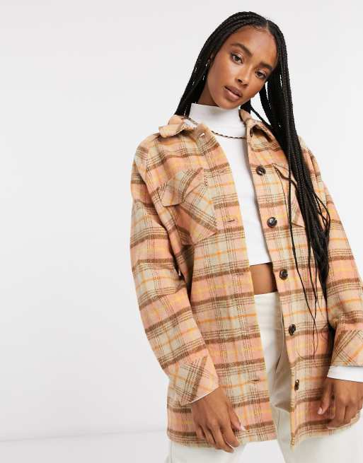 Only Lang Geschnittene Karierte Hemdjacke In Orange Asos