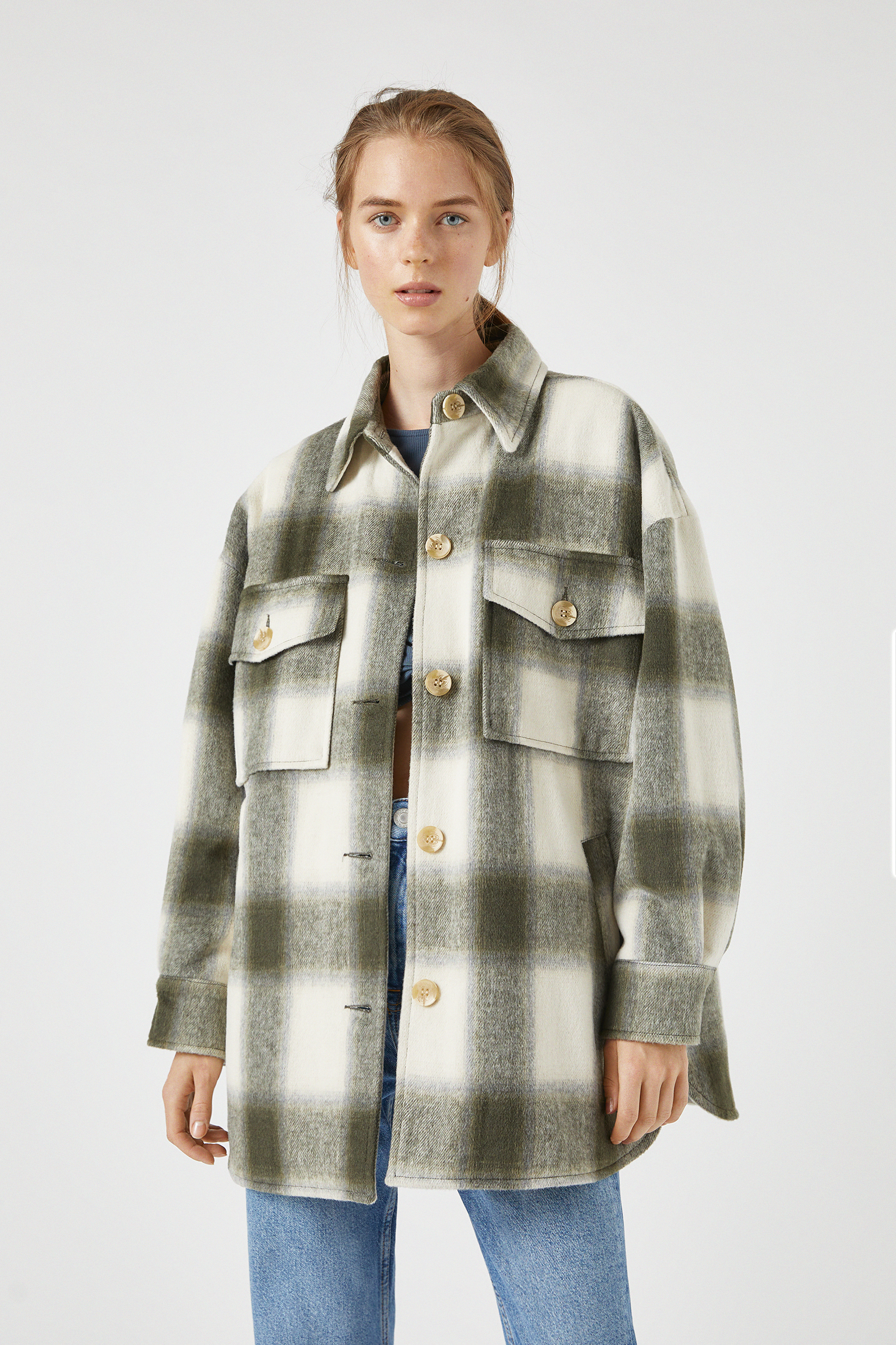 Karierte Hemdjacke Aus Stoff Pull Bear From Pull And Bear On 21 Buttons