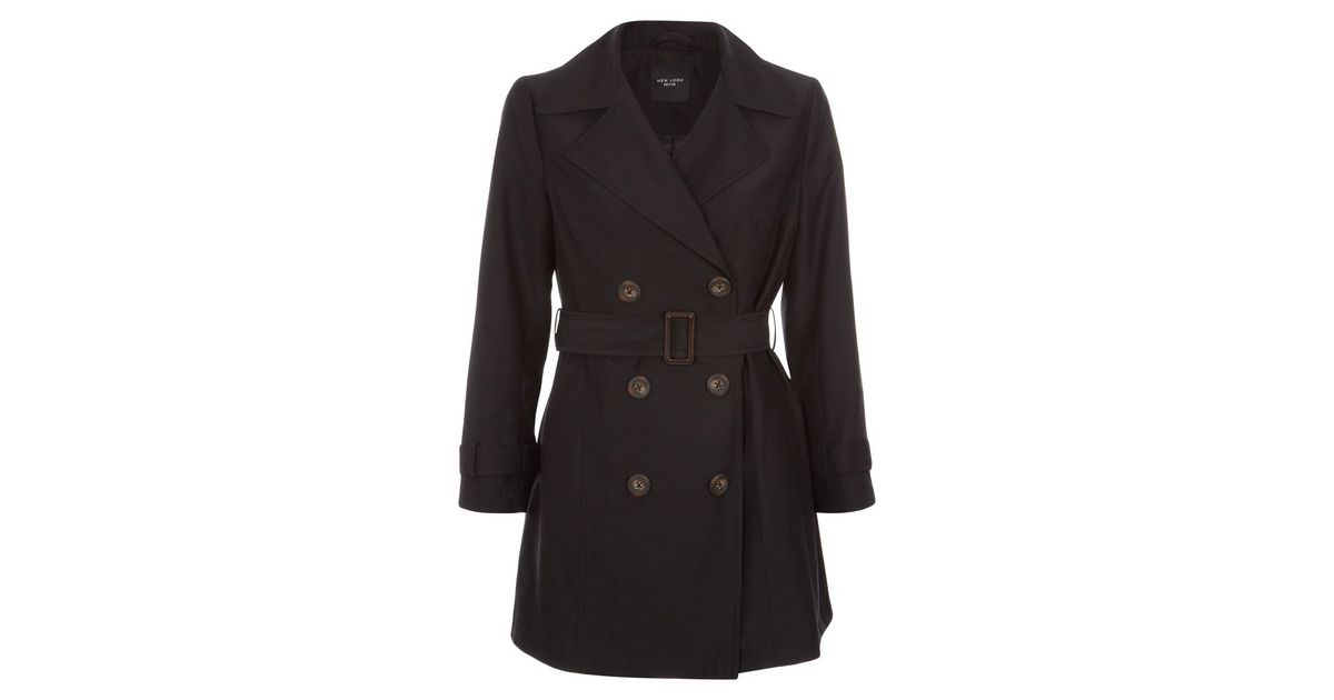 Petite Schwarzer Trenchcoat Mit Gurtel New Look