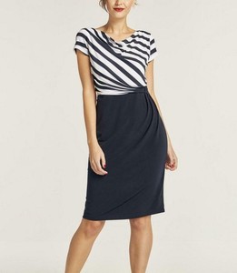 Heine Timeless Damen Kleid Jerseykleid Kurzarm Knielang Blau Weiss Gr 44 Neu Ebay
