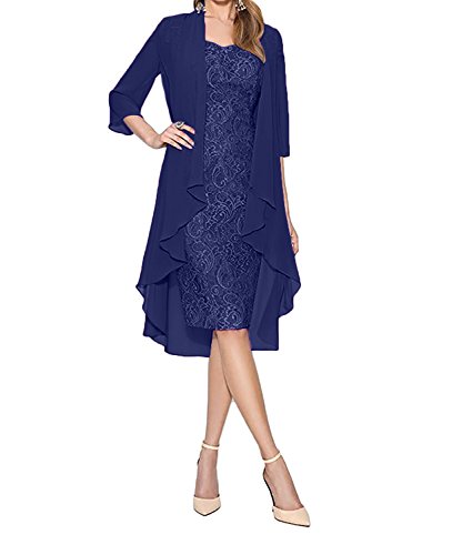 Charmant Damen Dunkel Royal Blau Spitze Knielang Abendkleider Brautmutterkleider Partykleider Etuikleider Mit Langarm 42 Dunkel Royal Blau Meineinkauf Ch
