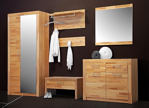 Garderoben Set Kernbuche Massiv Flur Garderobe Diele Kommode Spiegel Schrank Amazon De Kuche Haushalt