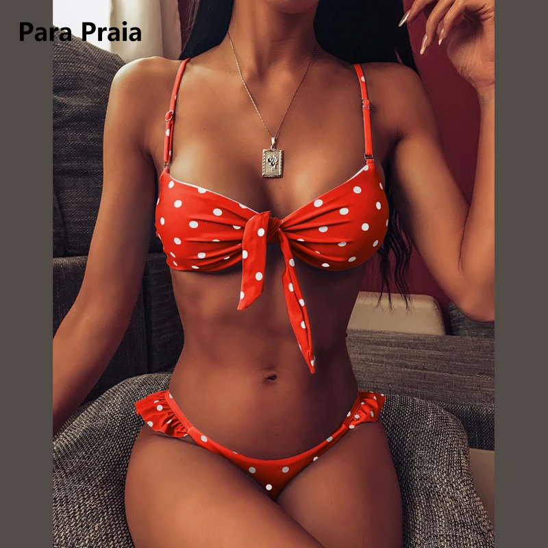 Para Praia Polka Dot Tanga Bikini Sexy Bandeau Brazilian Bikini Set Krawatte Volants Bademode Halter Push Up Badeanzug Body Suits Aliexpress