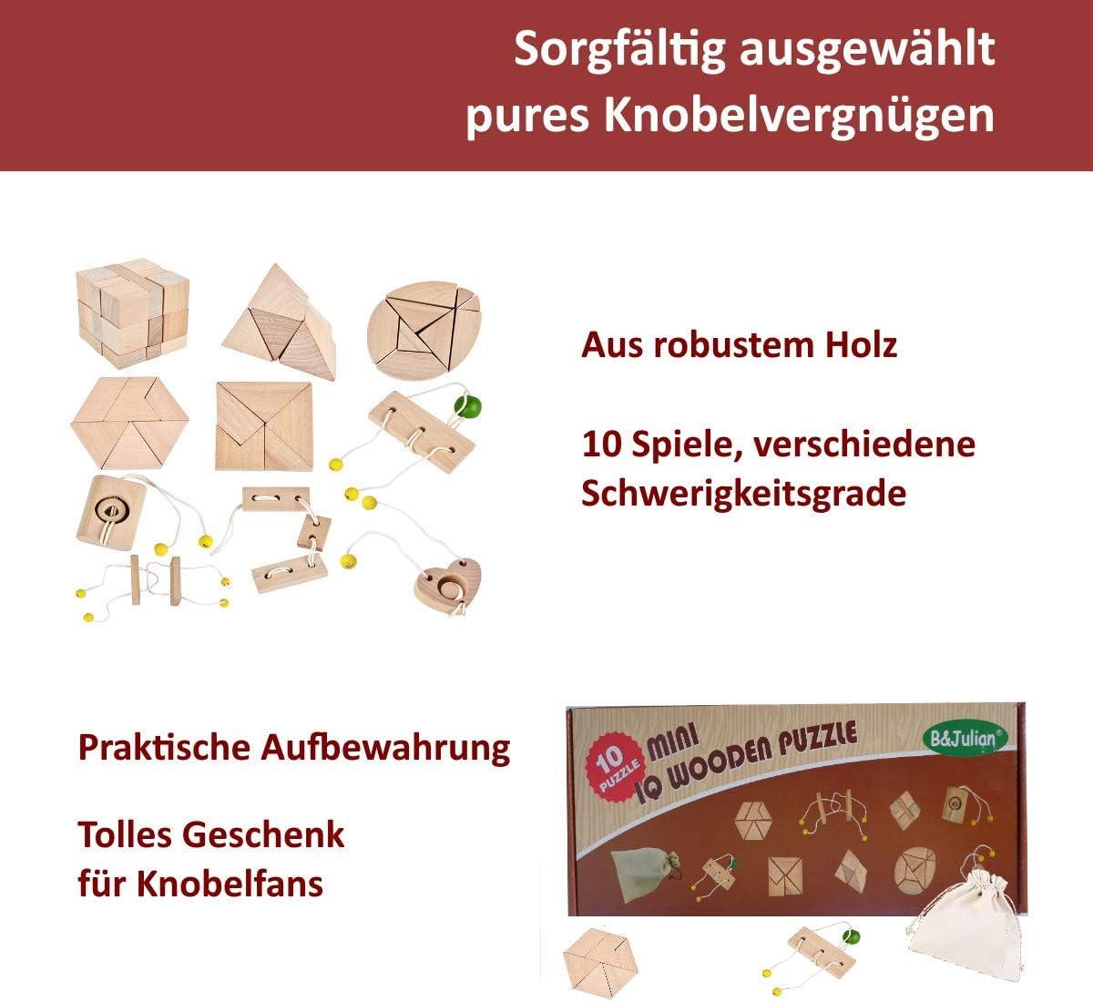 B Julian 3d Iq Holzpuzzle10 Mini Puzzle Set Aus Holz Knobelspiele Geduldspiel Ratselspiel Geschicklichkeitsspiel Fur Kinder Erwachsene Ideen Adventskalender Mitgebsel Spielzeug Adventskalender