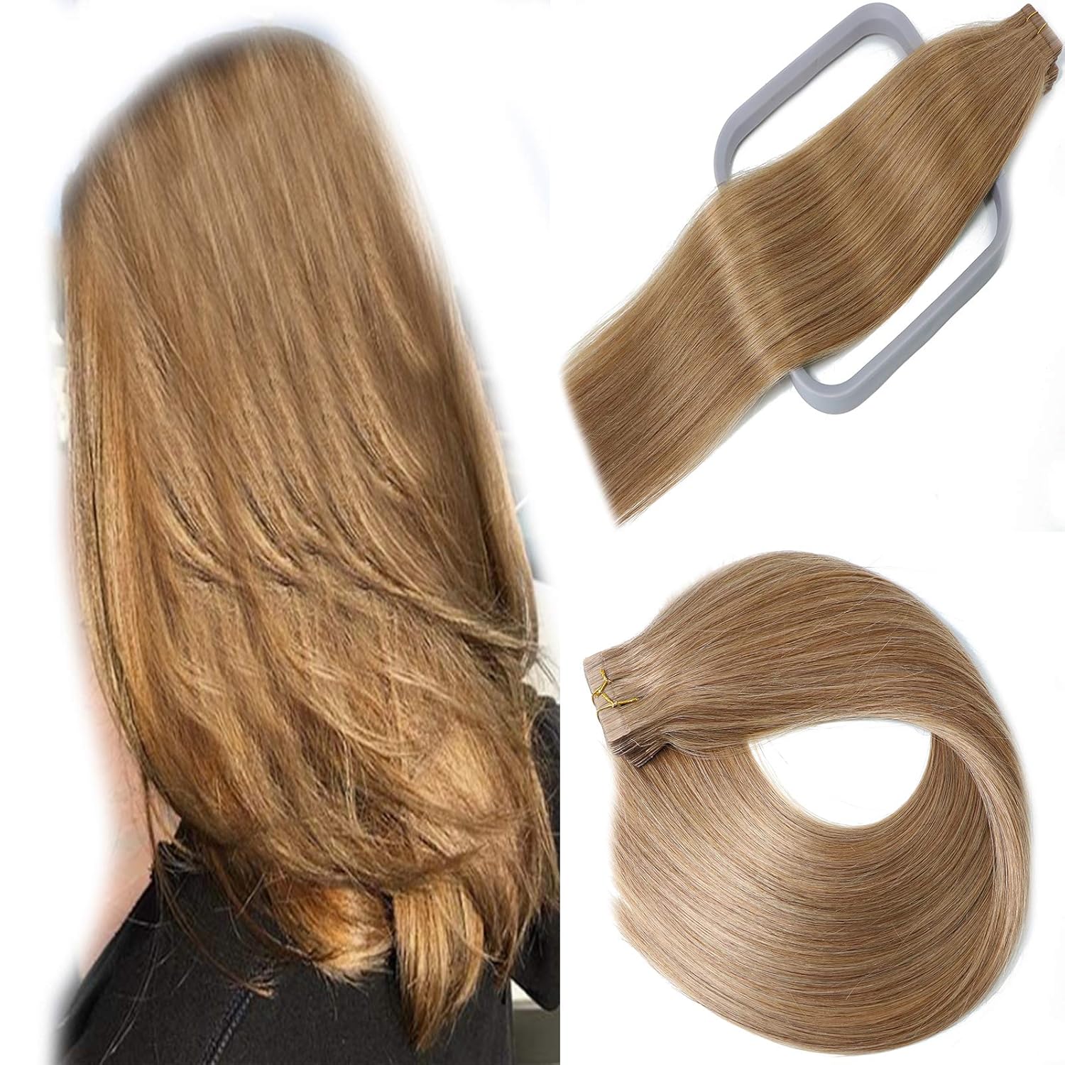Amazon Com Goo Goo pcs 50g Human Hair Extensions Tape In Ombre Chocolate Brown To Caramel Blonde Natural Hair Extensions Tape In Real Hair Balayage Straight 14 Inch Beauty