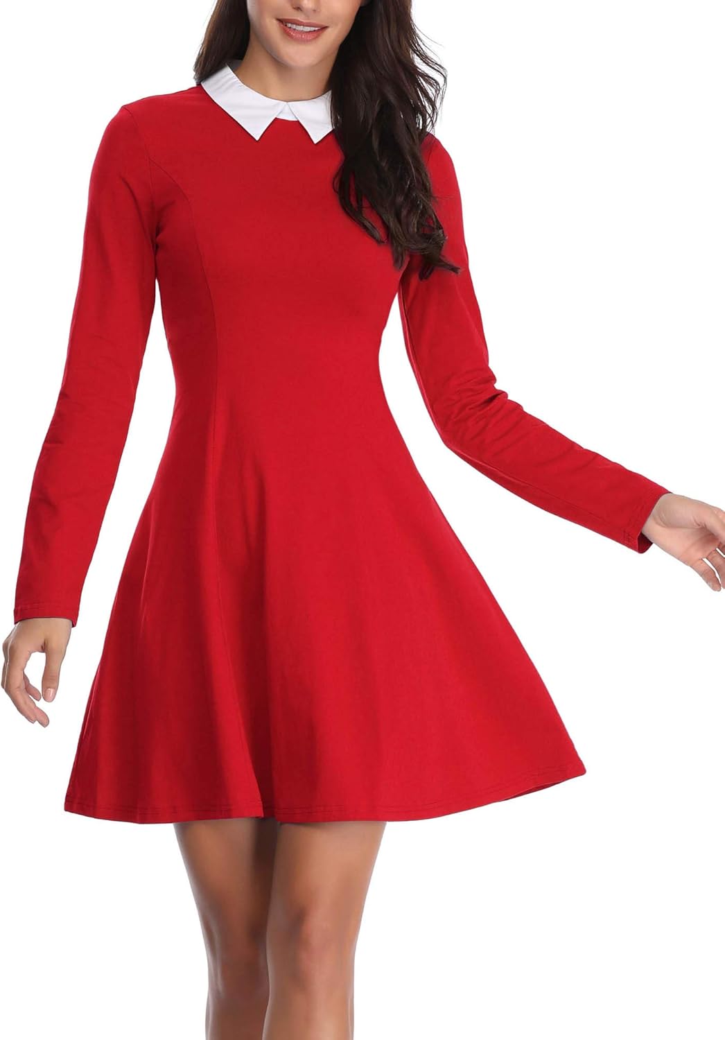Msbasic Damen Halloween Kleid Halloween Kostum Langarm Kleider Peter Pan Kragen Pinke Kleider Damen Swing Kurzes Kleid Mit 3 Farben Amazon De Bekleidung