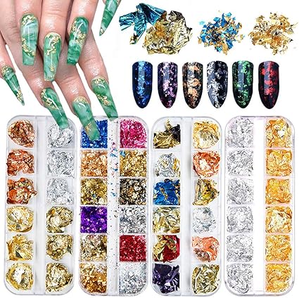 Kalolary 4 Boxes Holographic Nail Foil Paillette Chip Laser Aluminum Foil Nail Flakes Sequins Tinsel Foil Glitter For Diy Manicure Nails Design Decal Decoration Amazon Ca Beauty