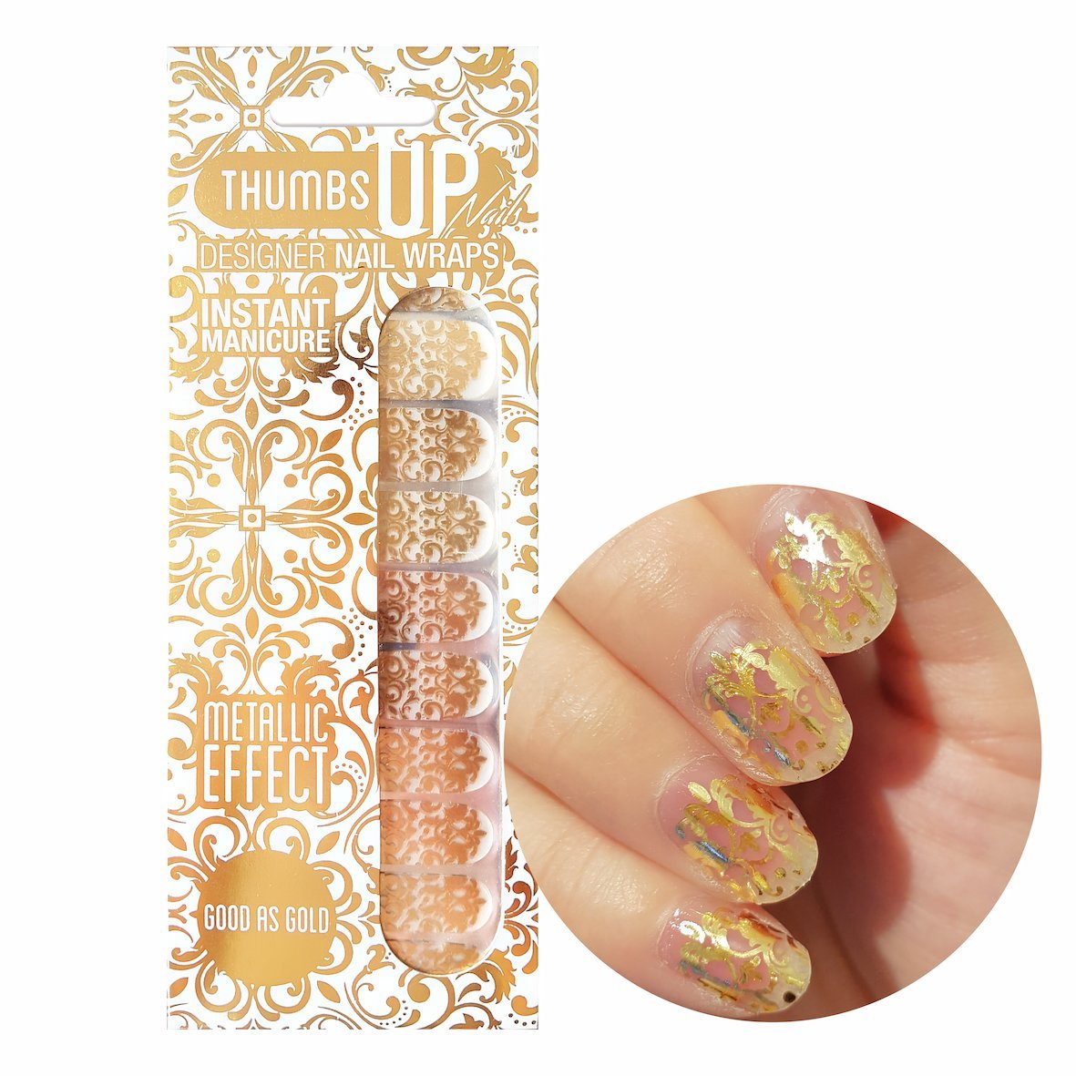 Good As Gold Metallic Nail Wraps By Thumbsup Nails Adhesive Nail Polish Strips Full Coverage Nail Art Stickers Packs Per Pack Amazon De Beauty