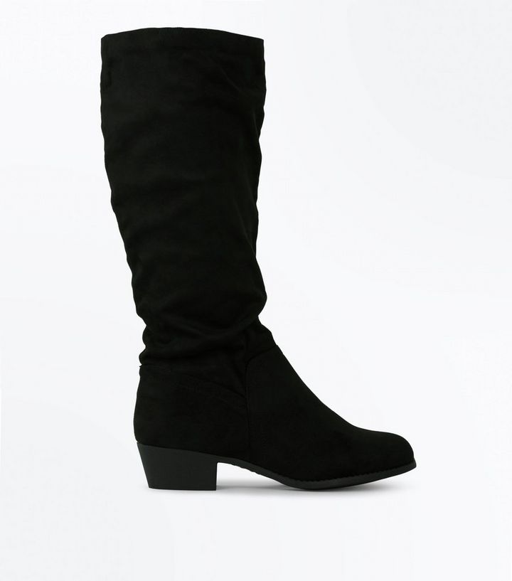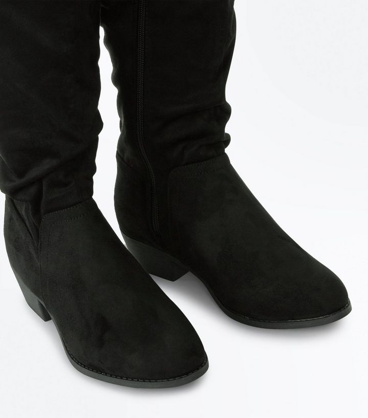 Wide Fit Kniehohe Wildlederimitat Stiefel Mit Weitem Schaft In Schwarz New Look
