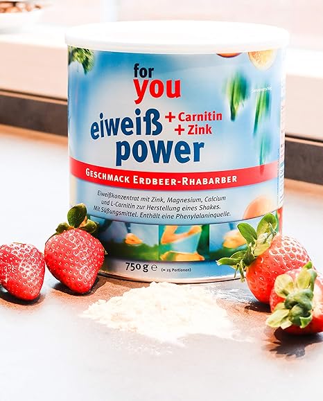 For You Power Eiweiss Nach Strunz I Eiweisspulver Erdbeer Rhabarber 750g Shaker I Mit Carnitin Whey Protein Sojaprotein Milchprotein I Biologische Wertigkeit 156 I Mehrkomponenten Pulver Amazon De Drogerie Korperpflege