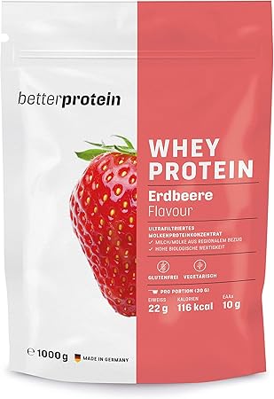 Whey Protein Erdbeere 1 Kg Hergestellt In Deutschland Aus Regionaler Milch Betterprotein Eiweisspulver Zum Muskelaufbau Und Abnehmen Beutel Amazon De Drogerie Korperpflege