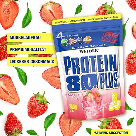 Weider Protein 80 Plus Eiweisspulver Erdbeer Low Carb Mehrkomponenten Casein Whey Mix Fur Proteinshakes 500g Amazon De Drogerie Korperpflege