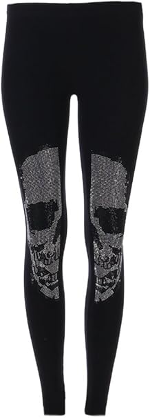 Leggings Totenkopf Skull Mit Steinchen Und Nieten Glitzer Glamour Fashion Rockstar Look Amazon De Bekleidung