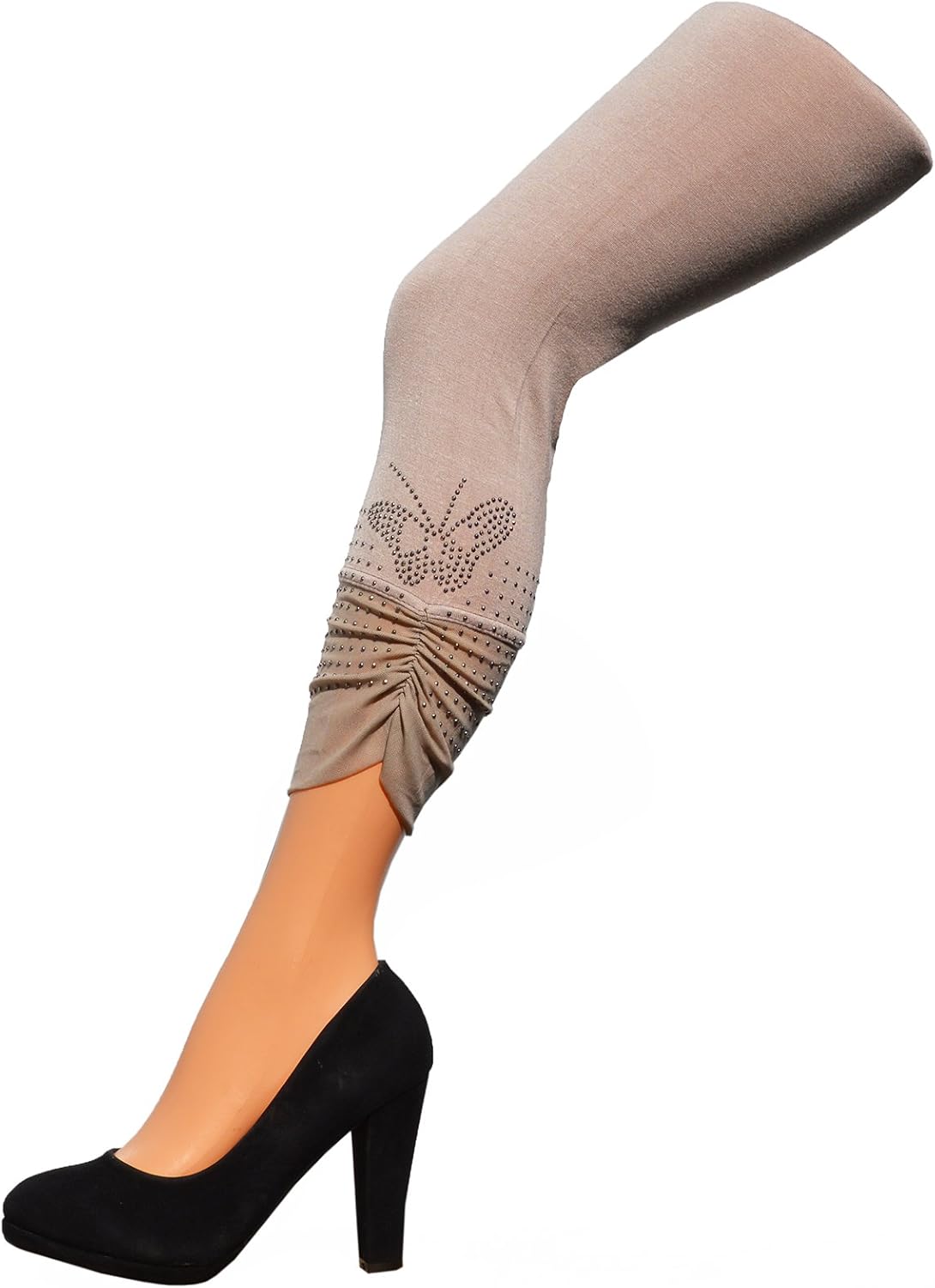 Unbekannt Damen Capri Leggings Mit Spitze Und Glitzer Blickdicht Viskose In Cappuccino Amazon De Bekleidung