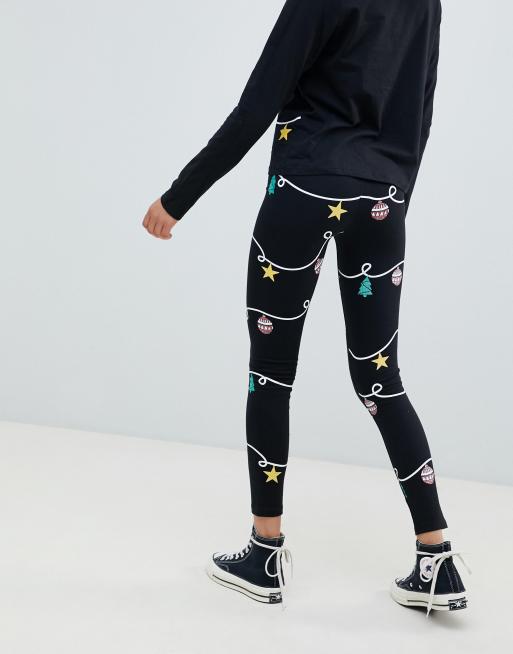 Asos Design Glitzer Leggings Mit Weihnachtsbeleuchtungsmotiv Asos