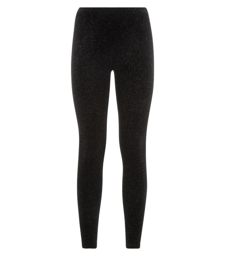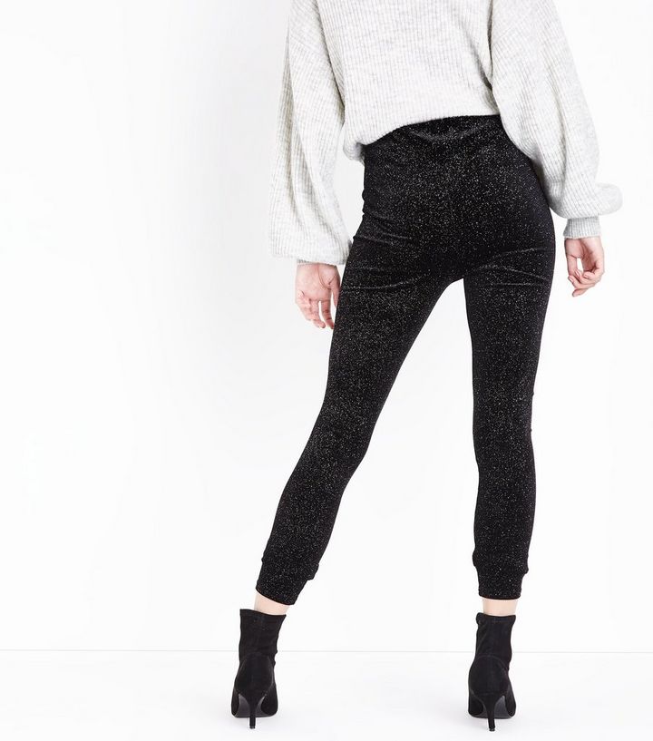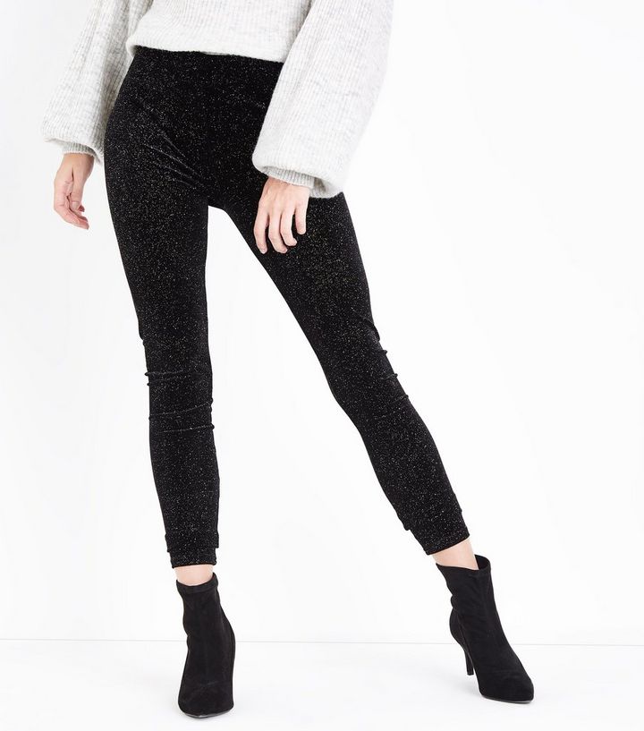 Schwarze Samt Leggings Mit Glitzer Optik New Look