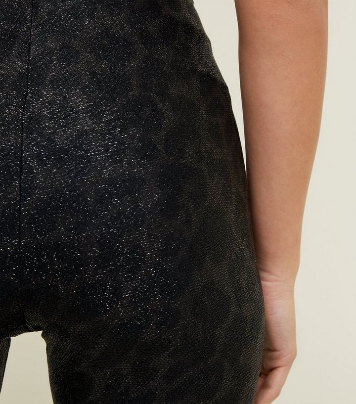 Schwarze Leggings Mit Glitzer Und Leoparden Print New Look