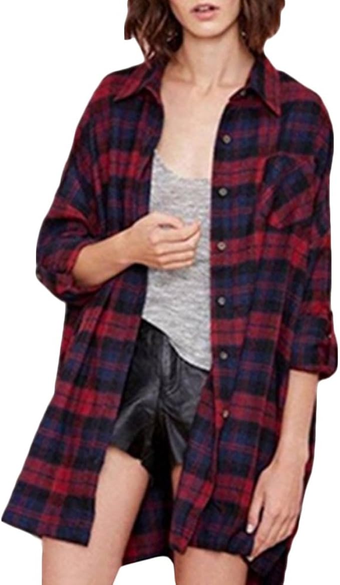 Damen Unibelle Damen Hemd Langarmshirt Kariertes Hemd Karohemd Hemdkleid Blusenkleid Oversize Cardigan Top Shirtkleid Karo Kleid Bekleidung Guiadejericoacoara Com Br