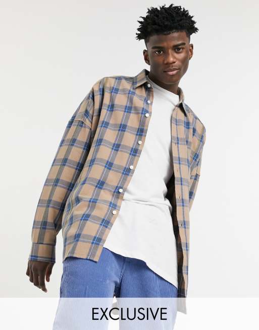 Collusion Beige Kariertes Oversize Hemd Mit Ziernahten Evesham Nj