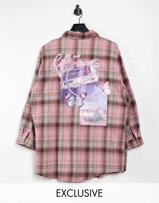 Missguided Kariertes Oversize Hemd Mit Grafik In Rosa Evesham Nj