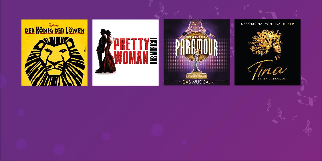 Süber genießen Sie gemeinsam ein Musical oder besuchen mit Ihren Kleinen das Miniatur Wunderland, abends entspannen Sie in der Sauna und lassen sich rundum verwöhnen Sie haben alle Optionen offen – gestalten Sie sich Ihren Kurzurlaub in Hamburg ganz nach Ihren Wünschen!. Erleben Sie mit TUI in der Welt der Musicals & Shows unvergessliche Momente mit Stage in Hamburg, Berlin, Stuttgart und Oberhausen Für jeden Geschmack ist etwas dabei Von brandneuen Produktionen wie ROCKY – das Musical, über geniale Shows wie die BLUE MAN GROUP, bis hin zu Klassikern wie Disneys DER KÖNIG DER LÖWEN. Hier finden Sie Reisepakete mit günstigen Angeboten für MusicalTicket und Hotel Günstige Angebote Top Hotels Musical Ticket Attraktive Zusatzleistungen.
