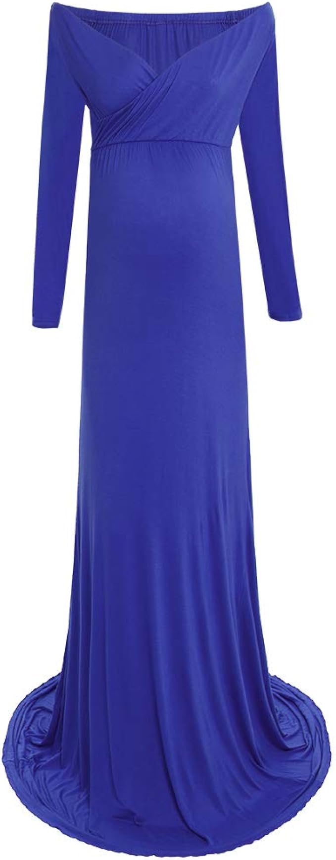 Damen Umstandskleid Fashion Vintage Langarm Maxikleid Normallacks Elegante Freizeit Schulterfrei Mutterschaft Umstandsmode Fotografie Schwangerschaftskleid Amazon De Bekleidung