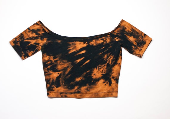 American Apparel Black Bleach Dye Off Shoulder Crop Top Etsy