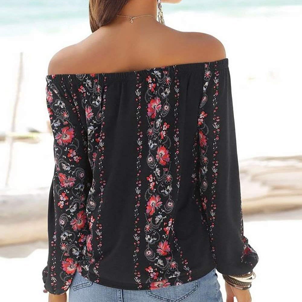 Anaisy Ladies Jackets Ladies Long Sleeve Floral Print Off Shoulder Tops Blouse Festival Shirt Popular Casual