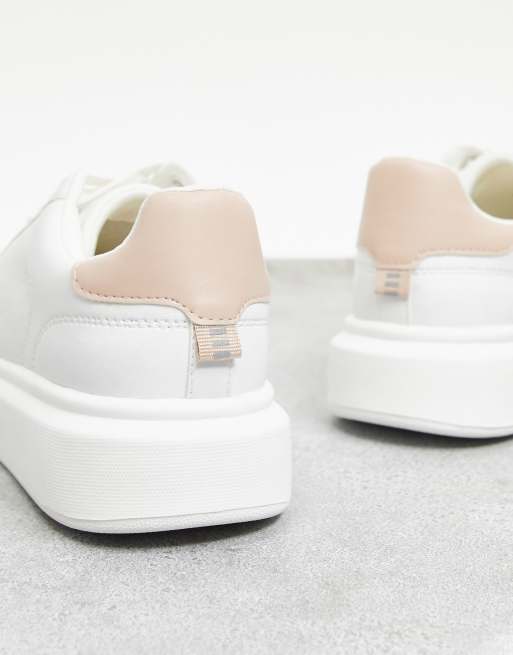 Pull Bear Weisse Sneaker Mit Flacher Plateau Sohle Und Einsatz In Nude Hinten Asos