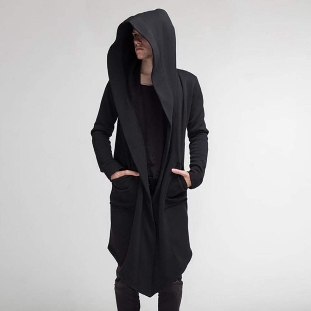 Schwarz Fat Mashroom Men Trench New Einfarbiger Kapuzen Trenchcoat Langarm Kapuzenpullover Outwear Streetwear Fruhling Herbst Herren Lange Jacke Strickjacke 5xl
