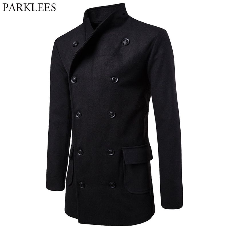 Herren Schwarz Lange Trenchcoats Wolle Cashmere Coat Business Jacke Oberbekleidung Winter Warm Einreiher Mantel Parka Amazon De Bekleidung