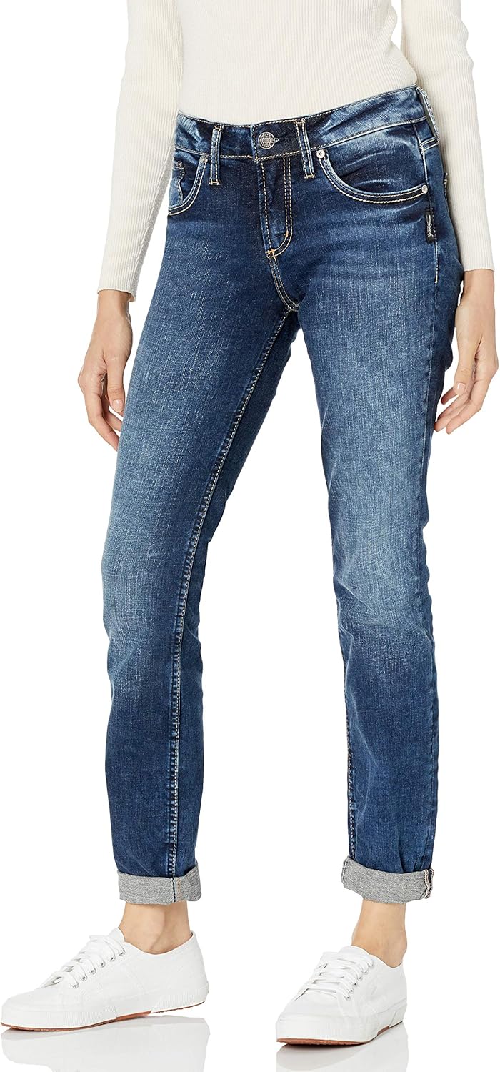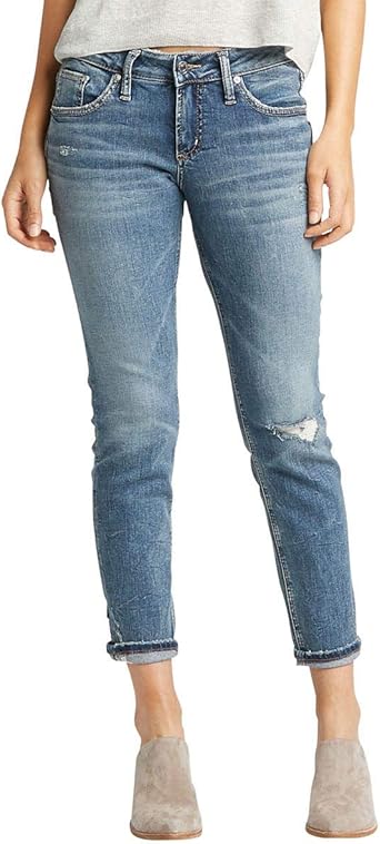 Amazon Com Silver Jeans Co Women S Boyfriend Mid Rise Slim Leg Jeans Clothing
