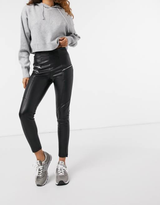 Asos Petite Leather Look Leggings With Elastic Slim Waist 36 Asos Lookastic