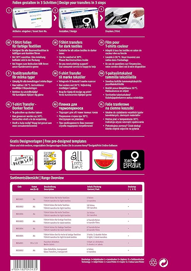 Avery Dennison My Design T Shirt Transfer For Dark Material 4 Sheets Amazon In Office Products