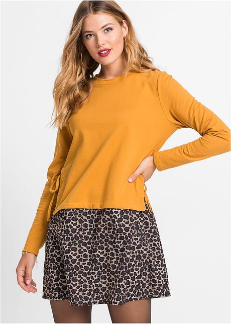 Auffalliges Two In One Kleid Mit Seitlicher Schnurung Gelb Leo Bedruckt
