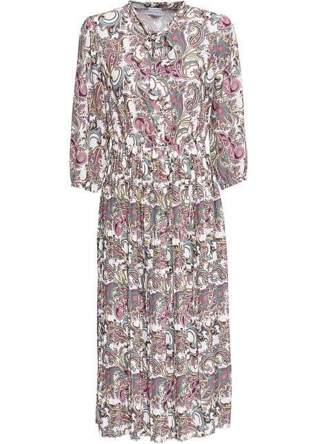 Kleid Mit Schluppe Am Kragen Und Der Rock Im Plissee Optik Beige Paisley