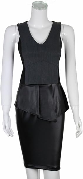 Laeticia Dreams Damen Abendkleid Etuikleid Mini Kleid Mit Leder Optik Rock S M L Farbe Grau Grosse 40 Amazon De Bekleidung
