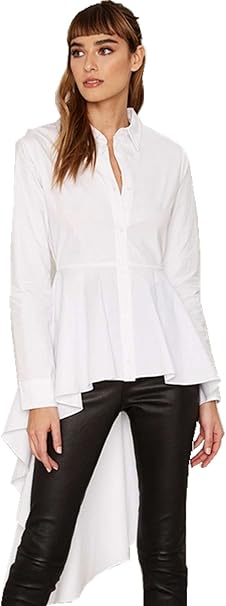 Irregular Hoch Niedrig Saum Volant Ruschensaum Ruschen Knopfleiste Vorne Fishtail Plissee Langarm Bluse Hemd Shirt Schosschen Oberteil Top Weiss Amazon De Bekleidung