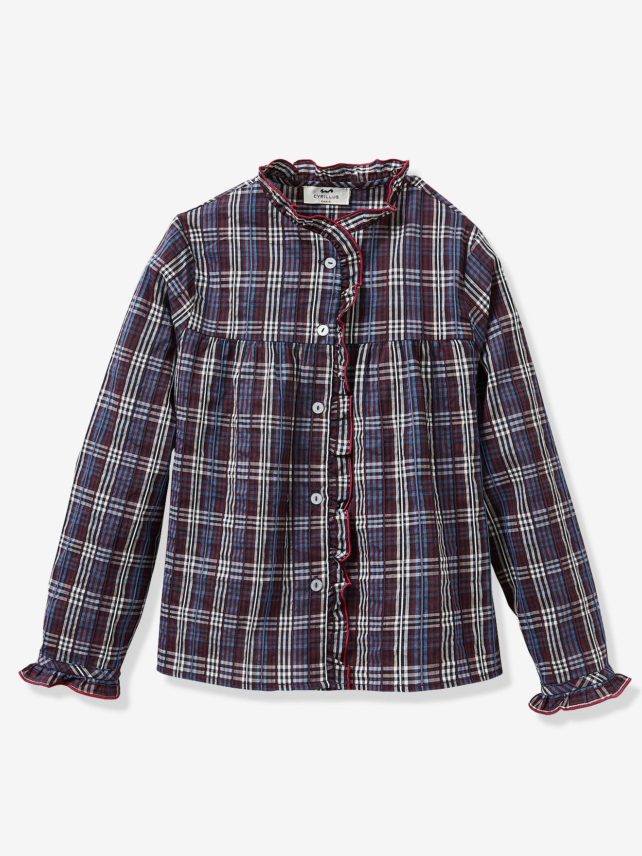 Cyrillus Madchen Bluse Mit Volants In Bordeaux Blau Kariert